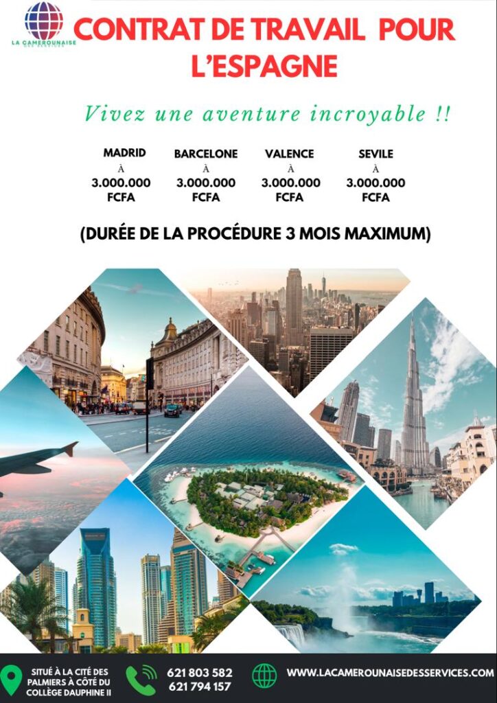 l’Espagne ouvre ses portes pour ceux et celles qui veulent dévélopper leur carrière et accoître leur expérience professionnelle. Maçon, électricien, soudeur, aide maçon, menusier, carreleur, mécanier auto, agent d’entretien, ouvriers dans les champs… N’attendez plus pour transformer votre vie.